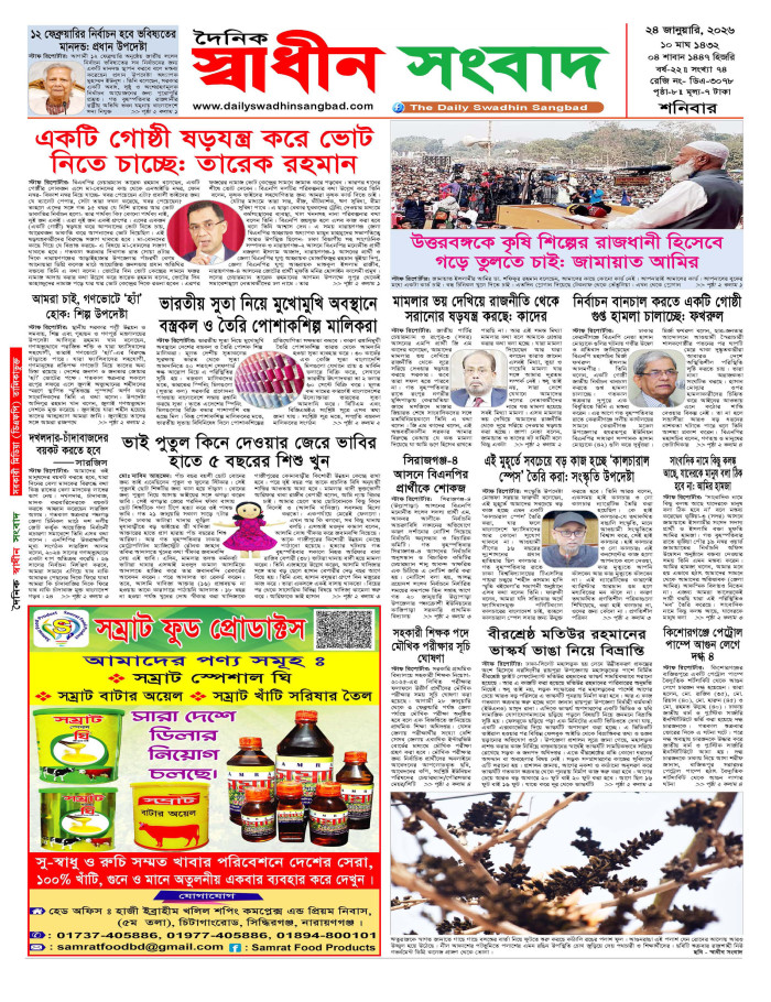শনিবার, ২৪ জানুয়ারী ২০২৬